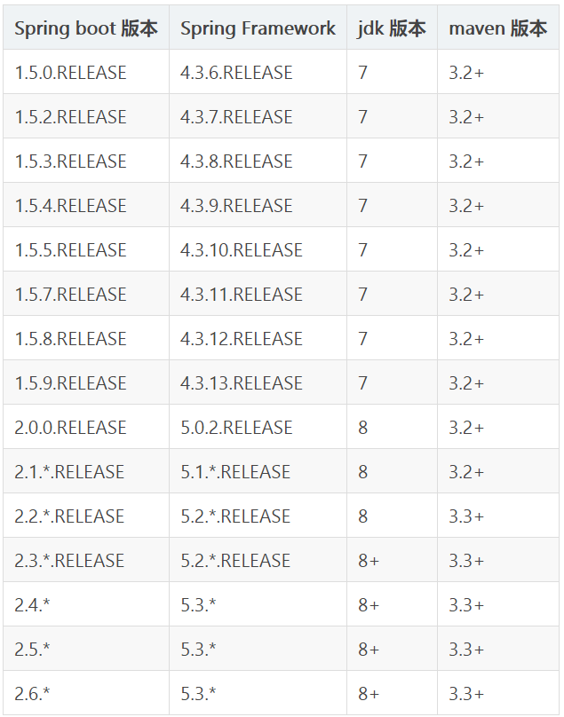 二、Spring Framework 与Spring Boot的版本对应关系